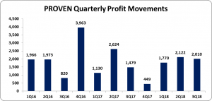 Other income moved from $1.77 million to total $3.16 million for nine months ended December 31, 2018, a vast increase of 78%. Proven booked an increase in pension management income to total $2.19 million, up from $1.72 million booked last year for the same time period.