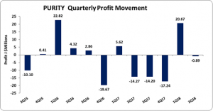 Consequently, PURITY recorded pre-tax profit of $22.60 million relative to a pre-tax loss of $8.49 million. Pre-tax loss for the quarter closed at $1.02 million compared to a pre-tax loss of $14.27 million in the previous corresponding quarter.