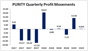 PURITY, as at June 30, 2019, recorded Total Assets of $999.97 million, an increase of 5% on $948.23 million reported in 2018. The increase was attributed mainly to a 4% growth in ‘Property, Plant and Equipment’ which closed at $732.93 million (2018: $948.23 million). ‘Cash and Cash Equivalents’ also increased 36% to $74.04 million (2018: $54.63 million).