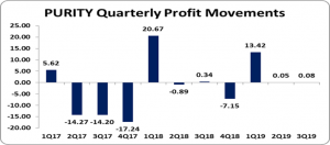 Consequently, PURITY recorded Pre-tax Profit of $15.48 million compared to a Pre-tax profit of $22.99 million in 2018. Pre-tax loss for the quarter closed at $94,379 in 2019 compared to a Pre-tax profit of $386,945 in the previous corresponding quarter.