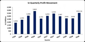 Earnings per share for the quarter amounted to $0.91 (2016: $0. 0.88), while EPS for the period totalled $2.26 relative $2.33 in 2017. The twelve month trailing EPS amounted to $3.02. The total number of shares used in the calculations amounted to 3,905,634,918 units. SJ’s stock last traded on November 14, 2018 at $39.44.