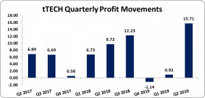 tTech Limited (tTech) for the six months ended June 30, 2019; booked an 8% increase in revenues to $156.91 million compared to $145.25 million recorded for the prior financial year’s six month period. According to management, “monthly recurring revenues continue to trend in the right direction and our organization is working aggressively on the promise of delivering insanely good IT services to our valued clients. Our sales team is diligently working through the strong pipeline of opportunities and their efforts are expected to positively impact our growth and performance in 2019.”