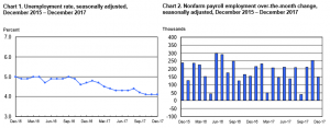 According to the U.S. Bureau of Labor Statistics, “Employment in retail trade was about unchanged in December (-20,000). Within the industry, employment in general merchandise stores declined by 27,000 over the month. Retail trade employment edged down in 2017 (-67,000), after increasing by 203,000 in 2016.” “Employment in other major industries, including mining, wholesale trade, transportation and warehousing, information, financial activities, and government, changed little over the month.”
