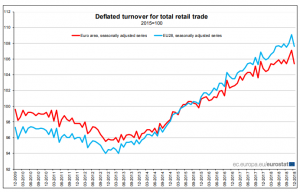 The report went on to state that in comparison to December 2017, December 2018 calendar adjusted retail sales index rose by 0.8% in the euro area and by 1.2% in EU28. Additionally, “the average retail trade for the year 2018, compared with 2017, rose by 1.4% in the euro area and by 2.0% in EU28.”